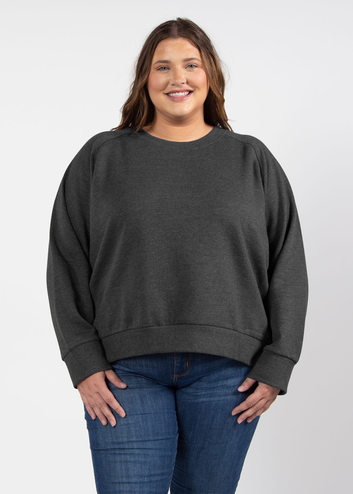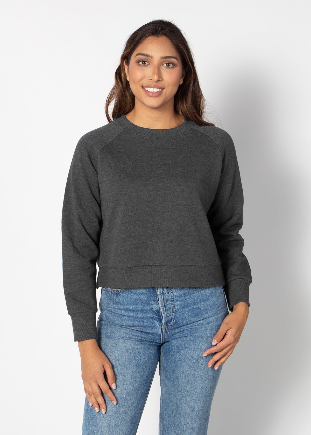 Say hello to your new favorite waist-length pullover! Featured in a wide and boxy fit that hits below the waist line with raglan sleeves, and ribbed neck, hemline and cuffs. You will fall in love with our heathered fleece with an extra smooth finish.
