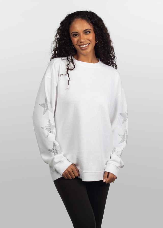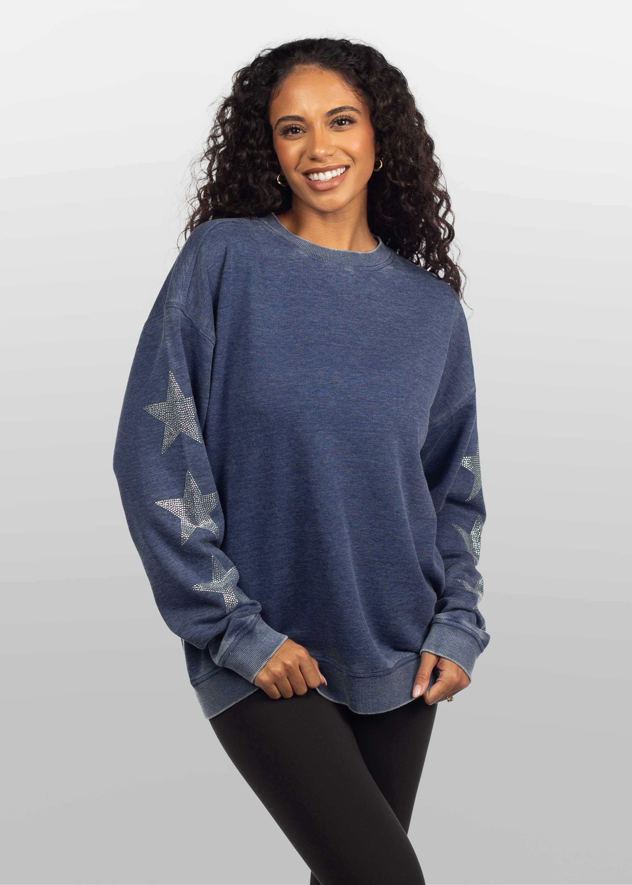 Burnout Crew Sweatshirt with Rhinestone Sleeves