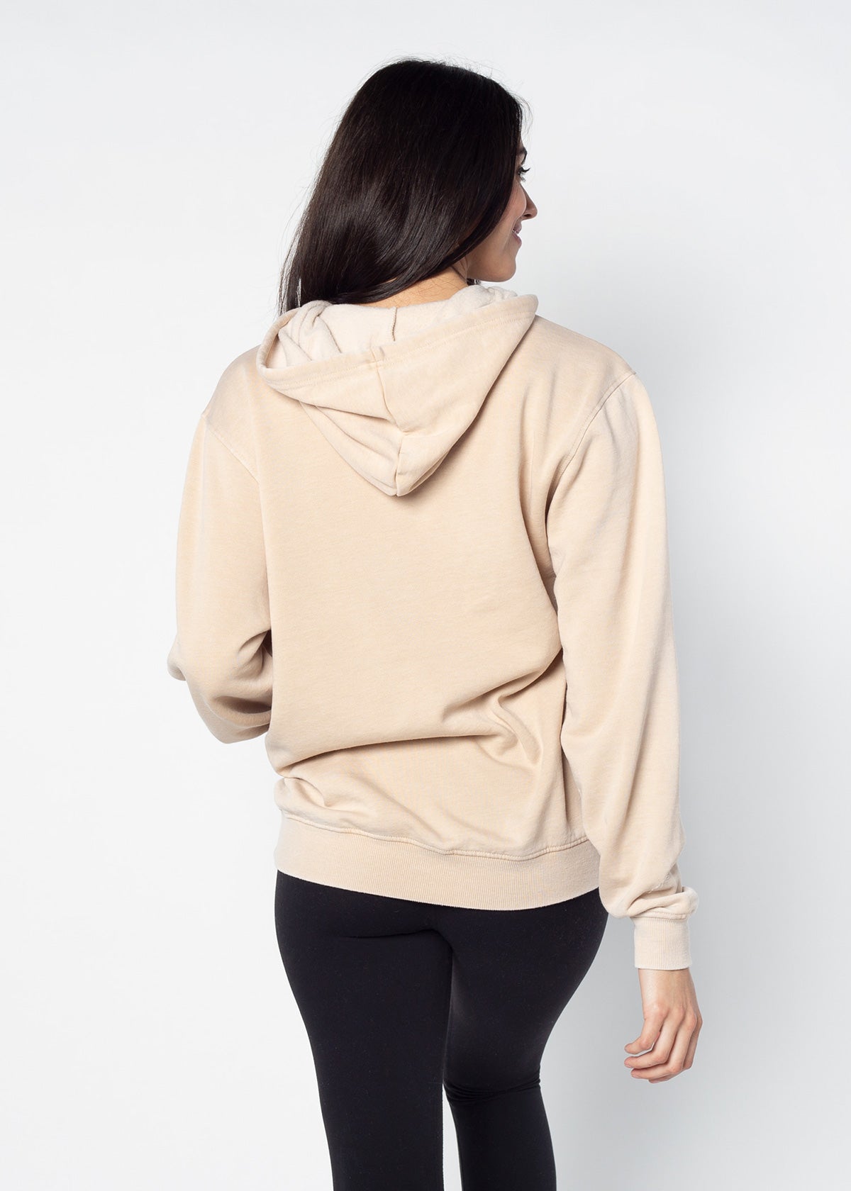 Unisex college fleece hoodie with kangaroo front pocket. Ribbed cuffs and hem. Dropped shoulders and relaxed bottom hemline. Burnout wash process provides a unique, washed and worn look and a comfortable feel.