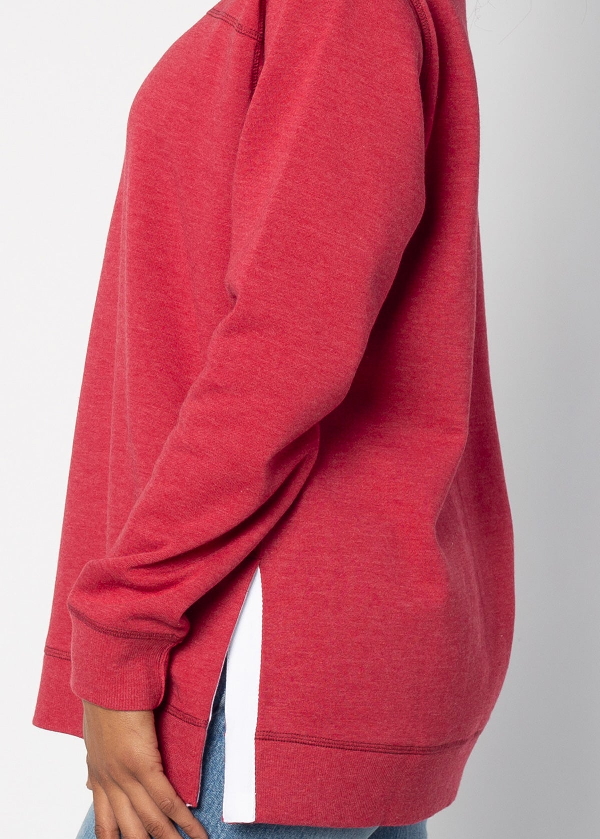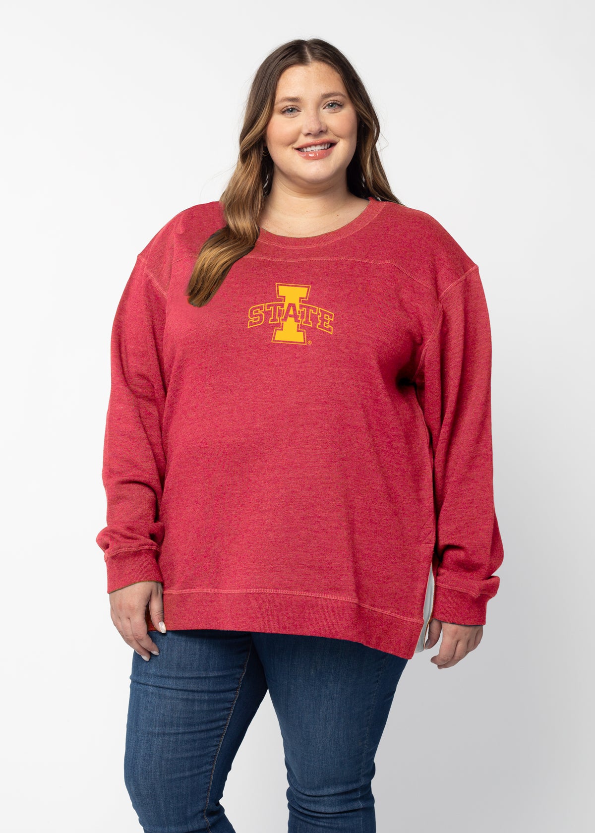 A classic Iowa State Cyclones crew neck fleece in a flattering tunic length that provides perfect coverage. Made for multitasking, the relaxed silhouette looks good in a variety of settings and pairs well with beloved jeans or leggings for extra comfort. Made from a heathered fleece with an extra smooth finish. Features easy-moving side slits finished with white twill tape