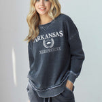 This ultra-soft Arkansas Razorbacks crew neck with dropped shoulders and relaxed hi-lo curved bottom hemline features ribbed neckline, cuffs and hem. Our favorite worn look is achieved by the burnout wash process.