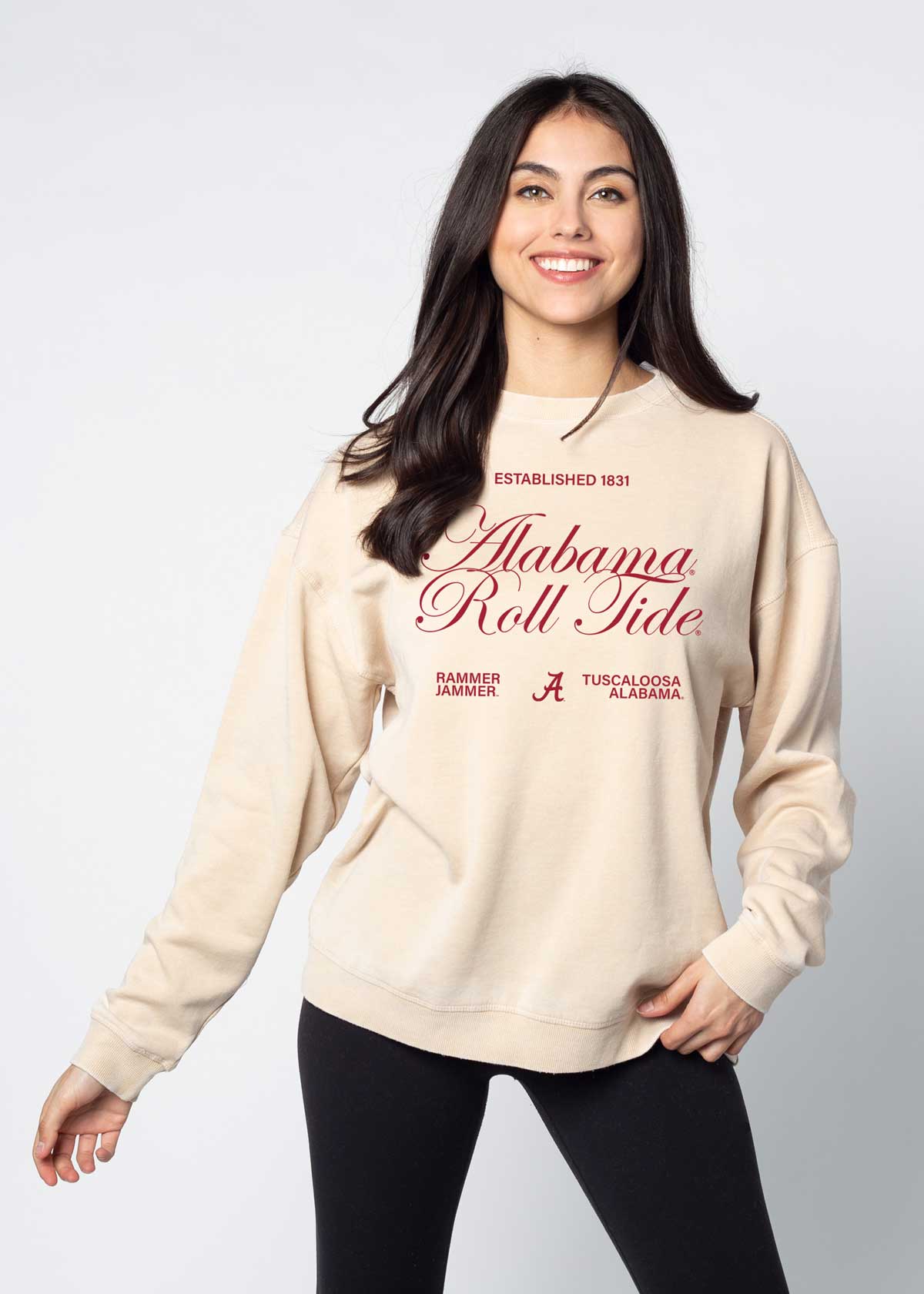 Alabama Crimson Tide Orientation Burnout Crew Sweatshirt in Oatmeal