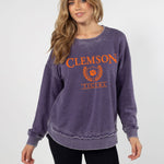 This ultra-soft Clemson Tigers crew neck with dropped shoulders and relaxed hi-lo curved bottom hemline features ribbed neckline, cuffs and hem. Our favorite worn look is achieved by the burnout wash process.