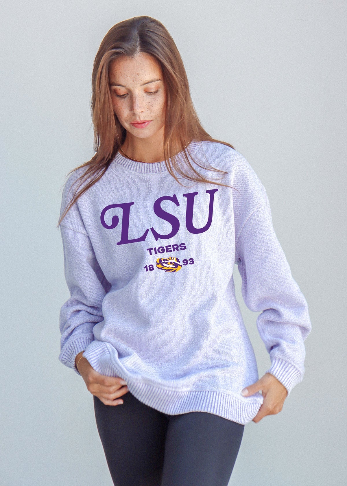 The coolest take in a forever LSU Tigers classic! Featured in our traditional crew oversized sweatshirt fit. Made from yarn dyed fleece with a textured heather look on the outside and a brushed, buttery soft inside. It will keep you warm and confident for any occasion.