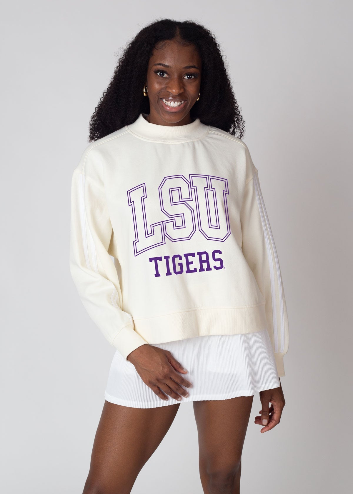 Meet our LSU Tigers Varsity Mock-neck a stylish, sporty top featuring a mock-neck design, combining comfort and a modern, athletic look. Perfect for layering or wearing on its own, it offers a casual yet polished vibe, ideal for both active and everyday wear.