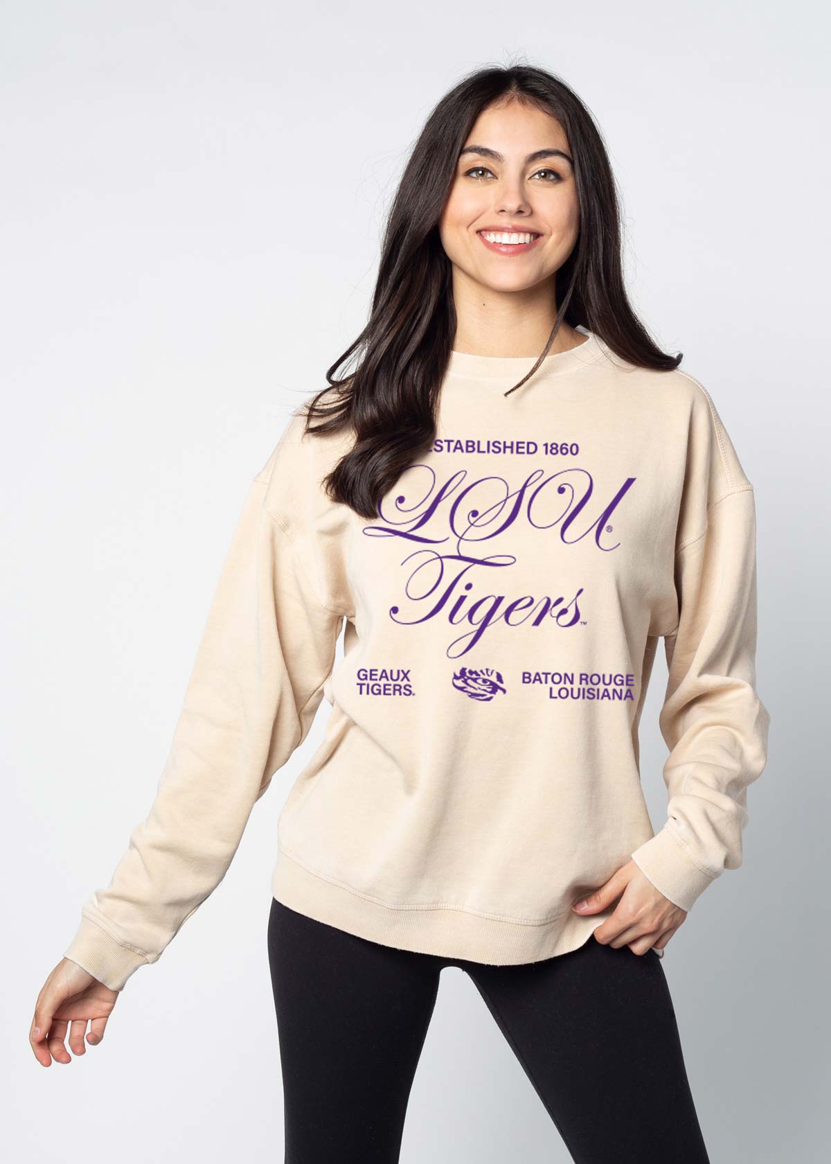 LSU Tigers Orientation Burnout Crew Sweatshirt in Oatmeal