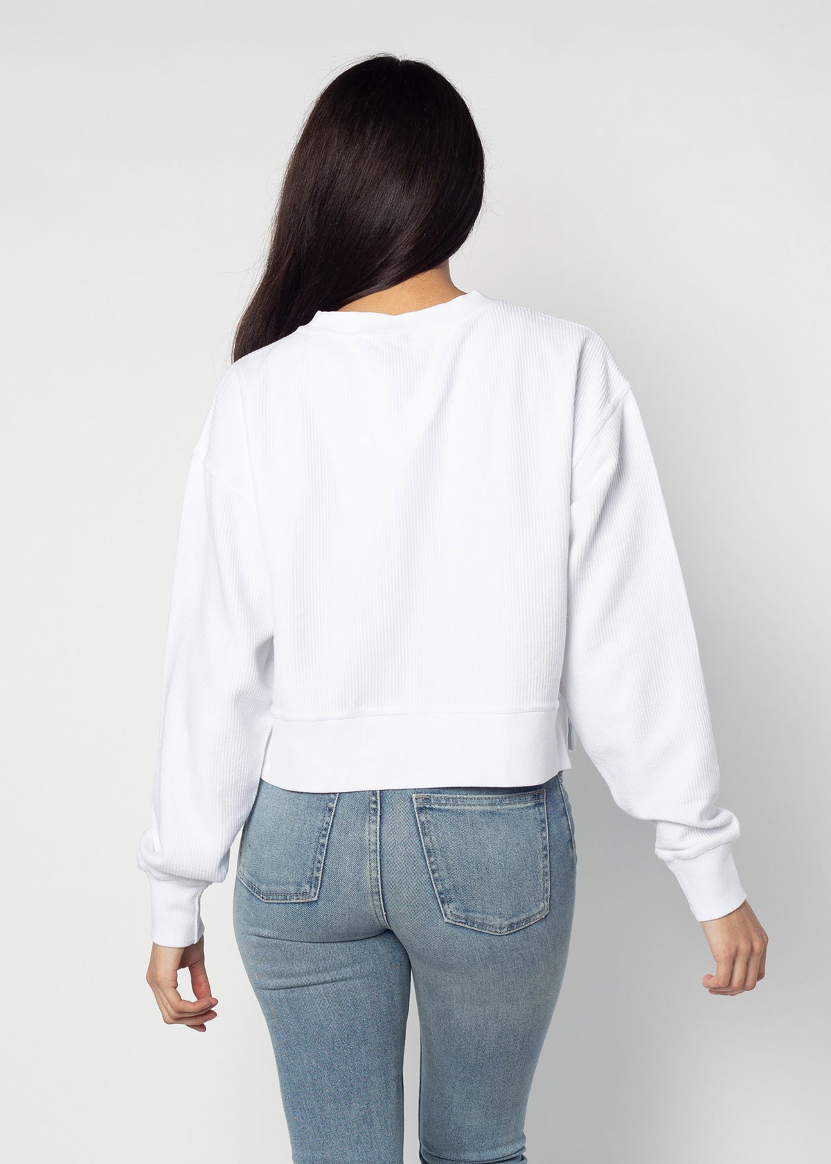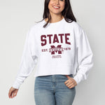 An update to our best seller! Mississippi State Bulldogs oversized sweatshirt with a super soft vintage wash corded fabric. Shorter cropped, feminine silhouette features a ribbed neckline, cuff and hemline.