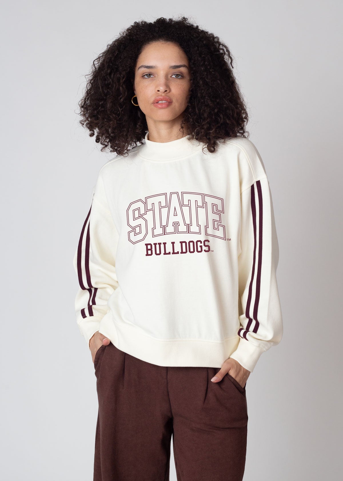 Meet our Mississippi State Bulldogs Varsity Mock-neck a stylish, sporty top featuring a mock-neck design, combining comfort and a modern, athletic look. Perfect for layering or wearing on its own, it offers a casual yet polished vibe, ideal for both active and everyday wear.