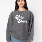 Our best seller! The oversized Ohio State Buckeyes Corded Crew sweatshirt features a super soft, vintage wash corded fabric. Ribbed crew neckline, cuffs, and hemline. Each piece is individually dyed, so please note there may be variation in color piece to piece. Sometimes, there can be a light streak at the shoulder due to the unique dye process, which is common.