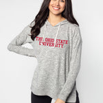 Super soft and cuddly Ohio State hoodie with open ribbed hemline and women's tunic length. Made of our softest fabric crafted from poly, viscose and spandex fibers.