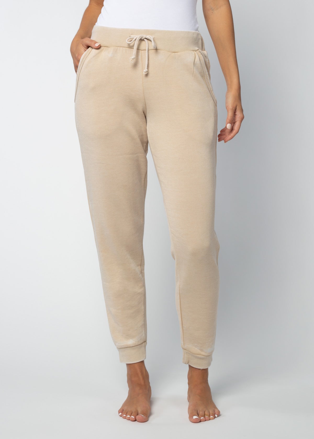 Slim fit joggers feature a drawstring waistband, side pockets and tapered legs with rub cuffs. Pairs perfectly with our burnout fleece tops for a trendy matching set.