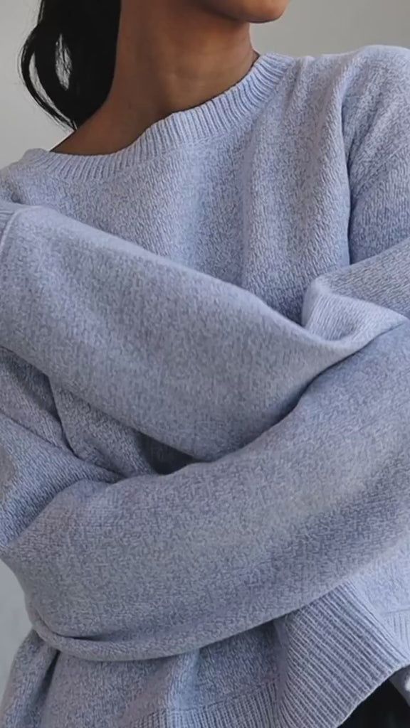 Unisex Light blue Oversized Premium cotton corded fleece Sweatshirt with Super soft hand feel, vintage wash and ribbed crew neckline, cuffs, and hemline