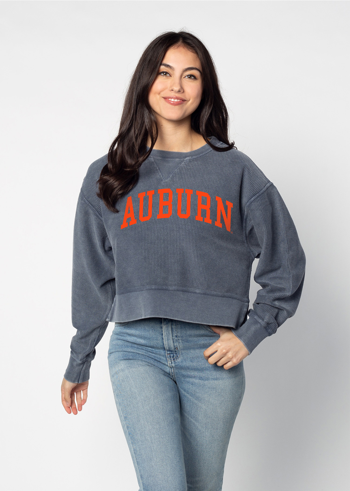 An update to our best seller! Auburn Tigers oversized sweatshirt with a super soft vintage wash corded fabric. Waist-length, feminine silhouette features a ribbed neckline, cuff and hemline.