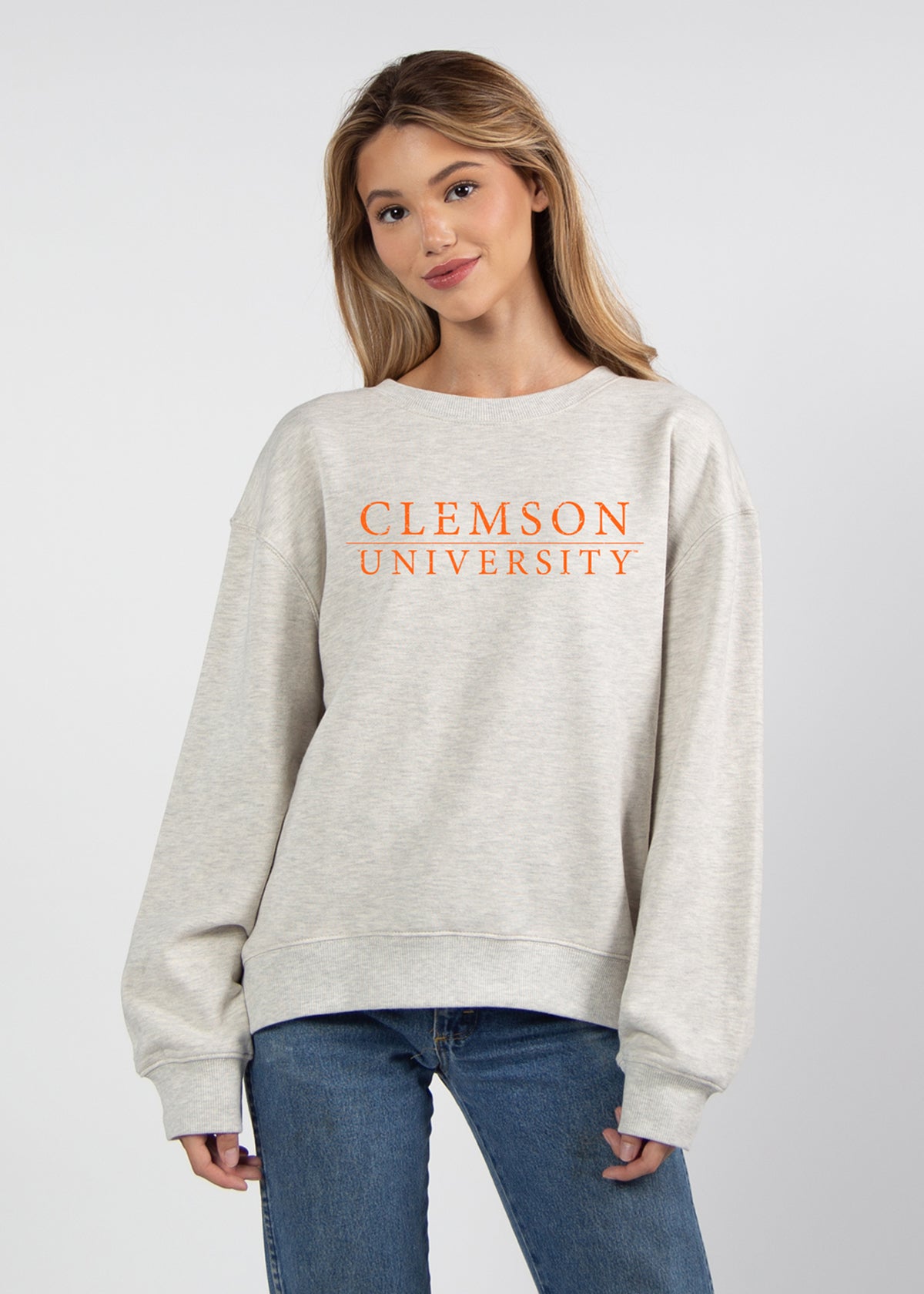 Nothing is better than a 90's inspired Clemson Tigers sweatshirt. We take the Old School Crew to the next level with our oh-so comfy fleece. Featured in an oversized fit with dropped shoulders and back seam details. Ribbed crew neck, hemline and cuffs.
