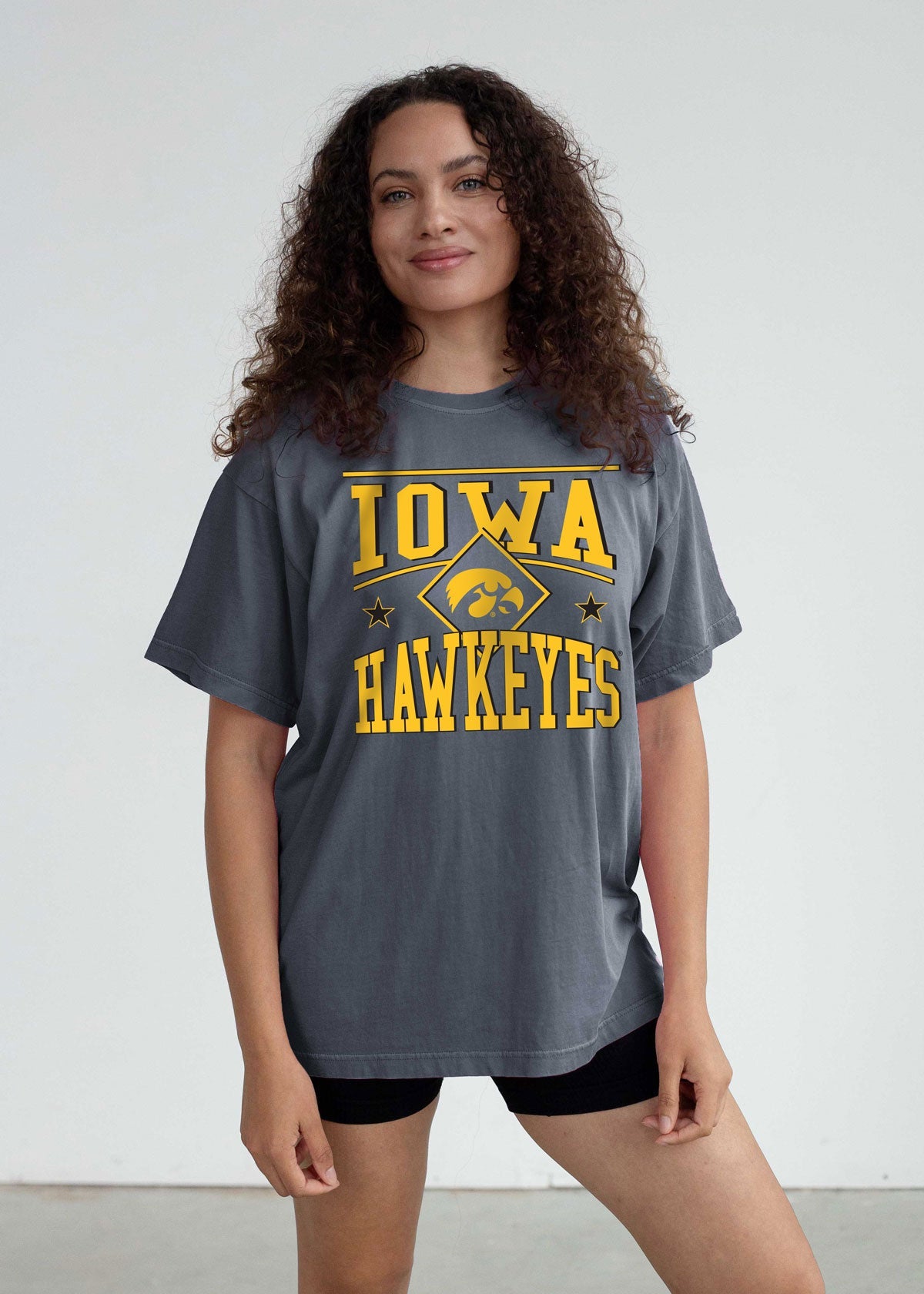 Say hello to effortless relaxation and embrace the laid-back vibes with the Iowa Hawkeyes OBX Short Sleeve T-shirt. Crafted with a super soft cotton jersey, and finished with a salt wash for a worn out look. With its classic crew neck, relaxed dropped shoulders, and spacious short sleeves, it offers both comfort and style in equal measure.