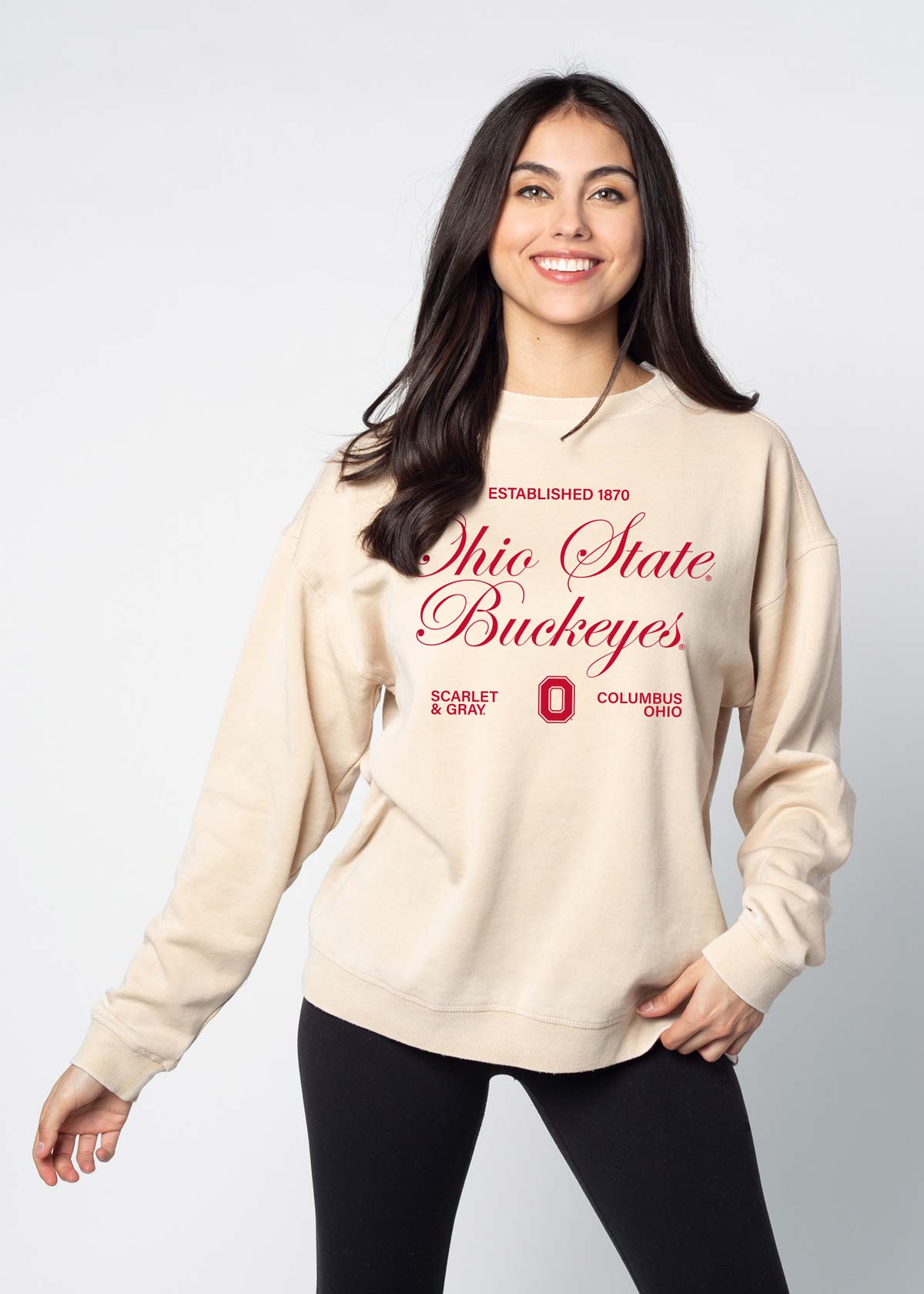 Ohio State Buckeyes Orientation Burnout Crew Sweatshirt in Oatmeal