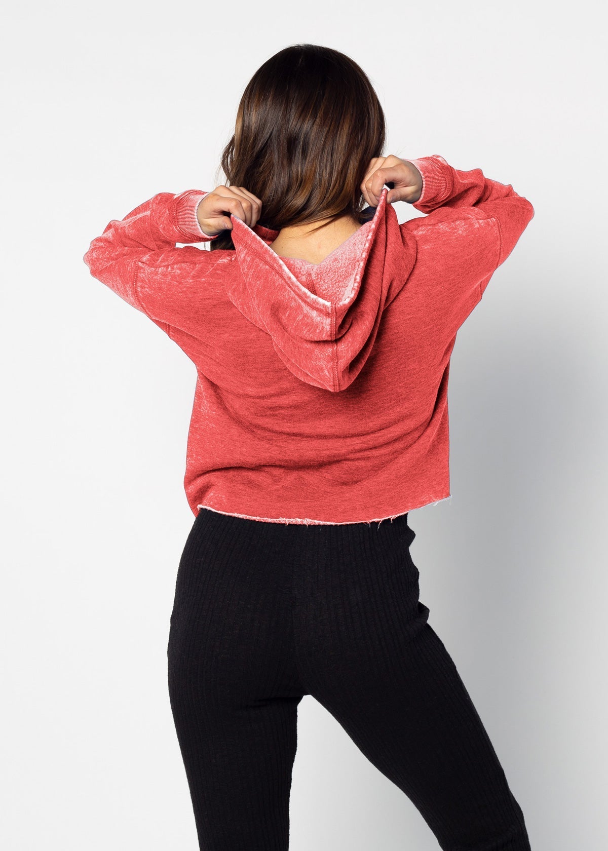 The softest Oklahoma Sooners hoodie you'll own! Roomy and boxy burnout fleece waist-length hoodie. Features a drawstring hood, dropped shoulders, and raw edge hemline. Burnout wash process provides a unique, washed and worn look and a comfortable feel. Pairs perfectly with our burnout joggers for trendy matching set.