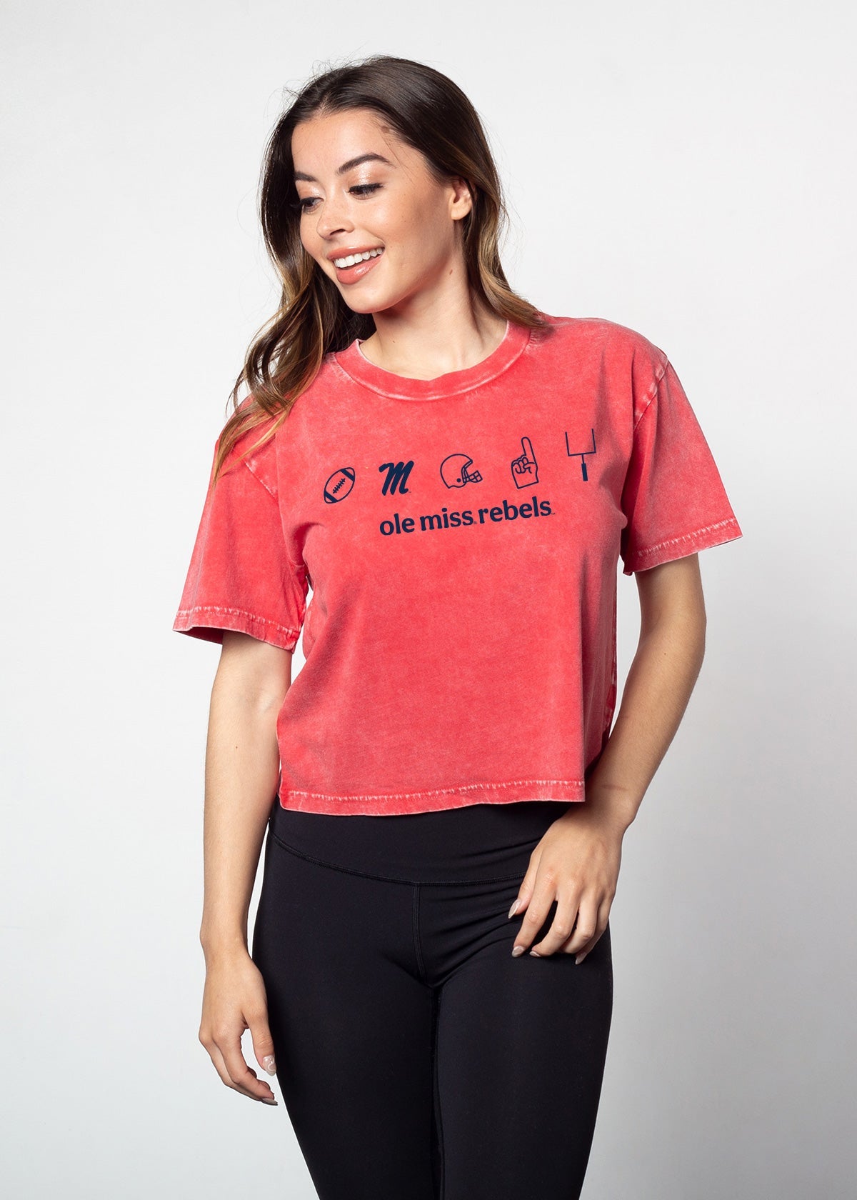 Meet the Ole Miss Rebels See You Saturday Tee. Your new go-to crop tee in a relaxed, boxy silhouette. The vintage inspired mineral wash adds another excuse to get this tee asap.