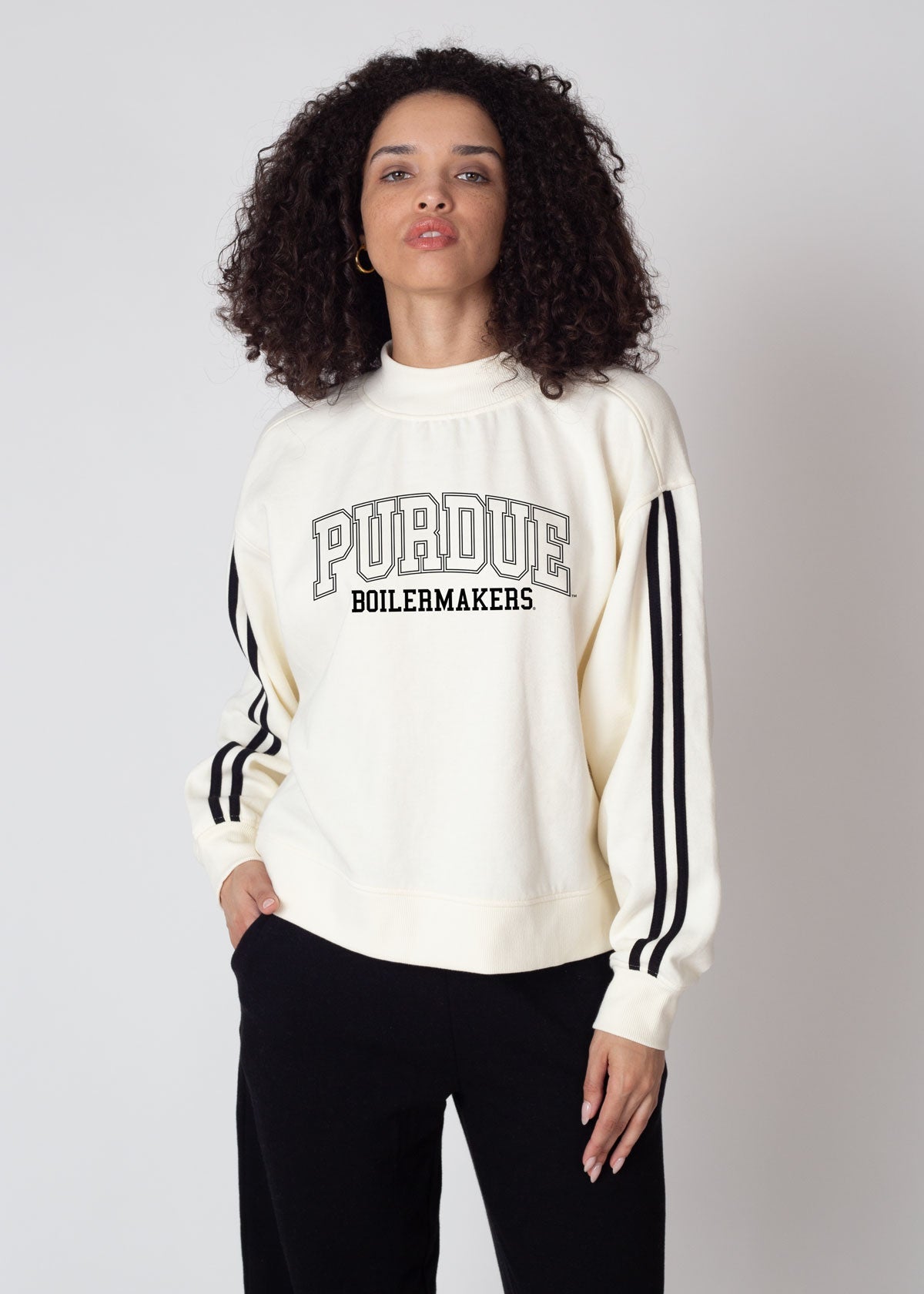 Meet our Purdue Boilermakers Varsity Mock-neck a stylish, sporty top featuring a mock-neck design, combining comfort and a modern, athletic look. Perfect for layering or wearing on its own, it offers a casual yet polished vibe, ideal for both active and everyday wear.