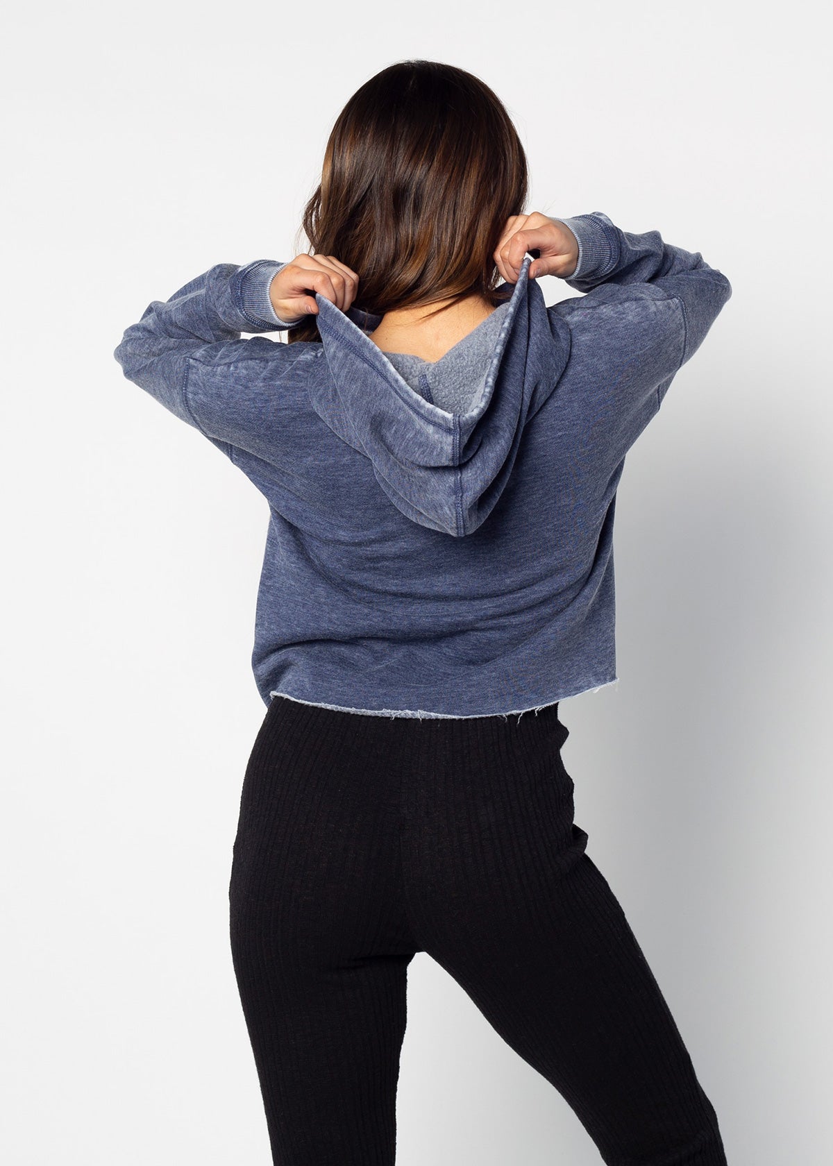 The softest West Virginia Mountaineers hoodie you'll own! Roomy and boxy burnout fleece waist-length hoodie. Features a drawstring hood, dropped shoulders, and raw edge hemline. Burnout wash process provides a unique, washed and worn look and a comfortable feel. Pairs perfectly with our burnout joggers for trendy matching set.