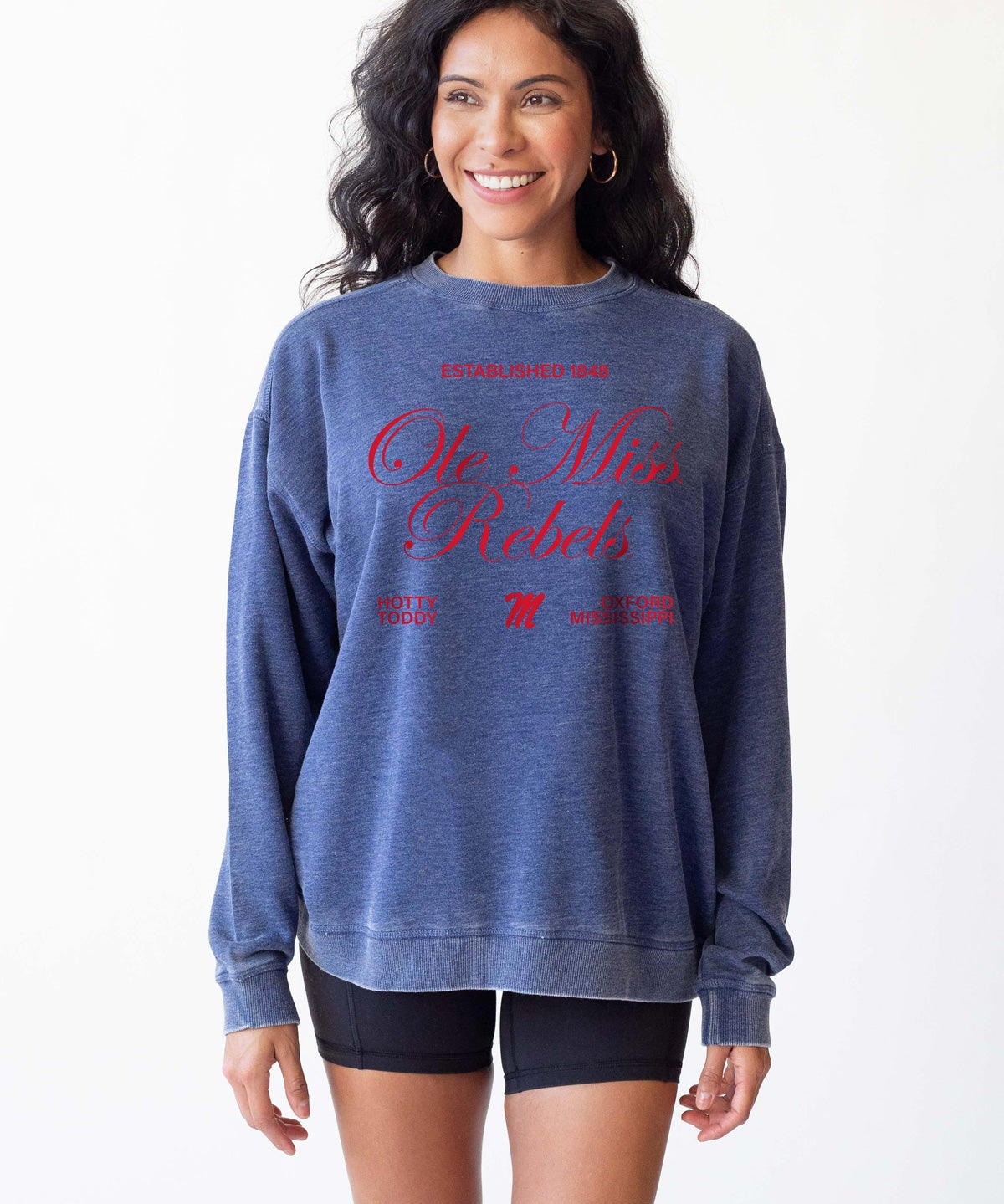Ole Miss Signature Burnout Crewneck Sweatshirt in Navy