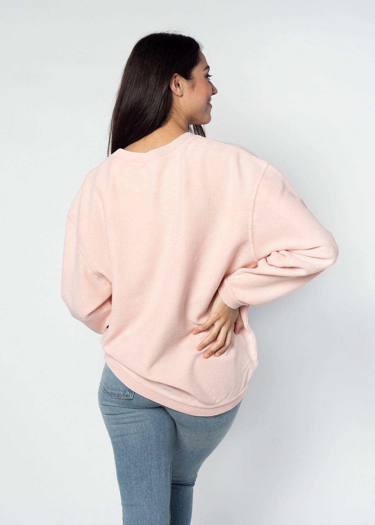 Our best seller! The oversized Oklahoma Sooners Corded Crew sweatshirt features a super soft, vintage wash corded fabric. Ribbed crew neckline, cuffs, and hemline. Each piece is individually dyed, so please note there may be variation in color piece to piece. Sometimes, there can be a light streak at the shoulder due to the unique dye process, which is common.