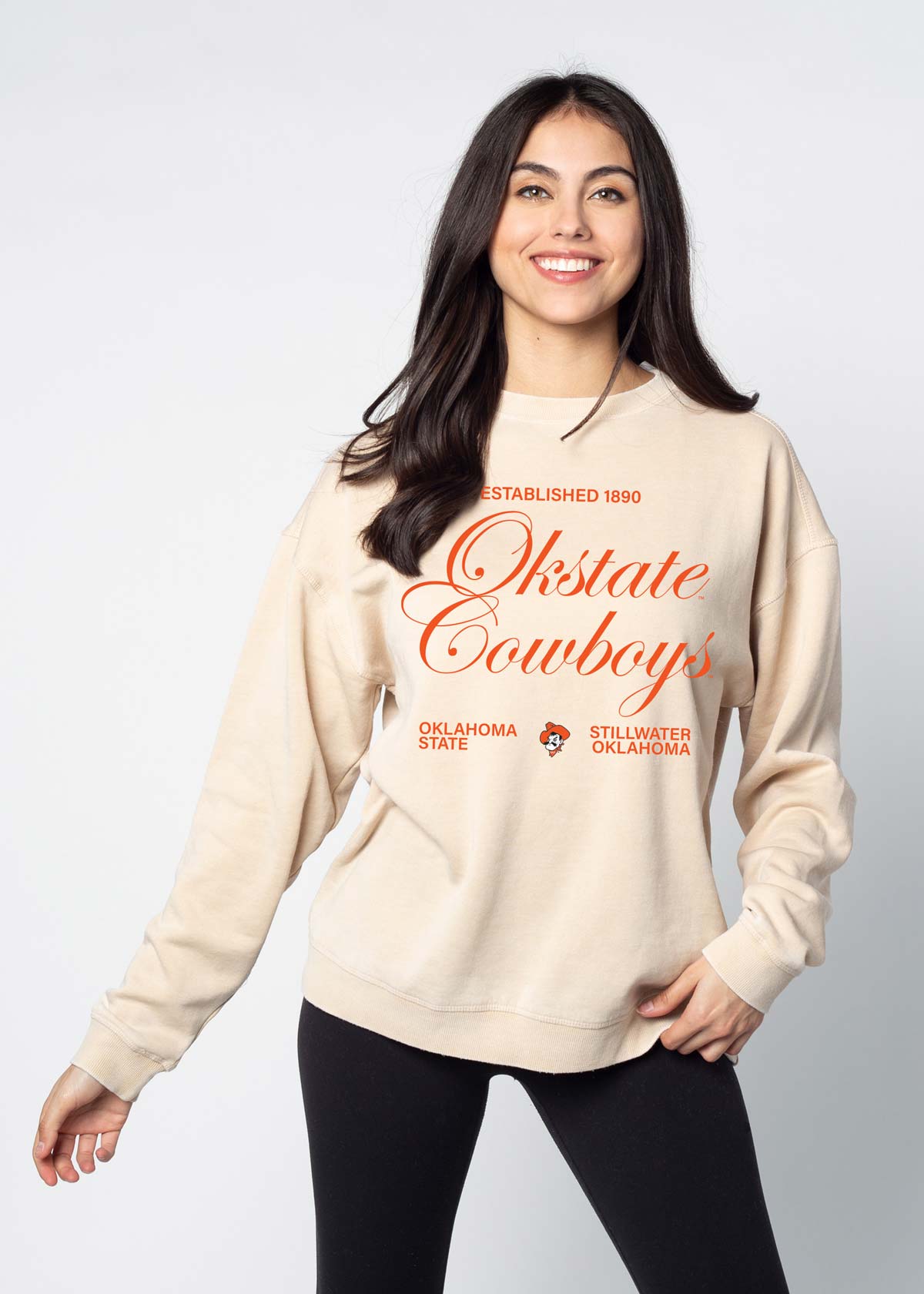 The softest, coziest fleece you'll ever wear — now officially licensed for the Oklahoma State Cowboys. Buttery soft to the touch, with a burnout wash treatment for an edgy take on this classic silhouette. Unisex oversized fleece sweatshirt with ribbed neckline, cuffs, and hem. Dropped shoulders and a relaxed bottom hemline.