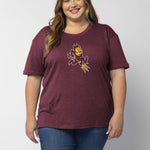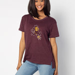An Arizona State Sun Devils staple with just the right amount of detail. This easygoing everyday tee is crafted from a lightweight cotton poly blend with a subtle heathered look and a soft hand feel. Features ribbed scoop neck, short rolled sleeves, and a longer back hem for extra coverage.