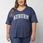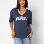 Elevate your Auburn Tigers essentials with this short sleeve dolman tee. Made from a breathable cotton poly blend with a subtle heathered look and a soft hand feel. The tee has a semi-rounded v-neckline, dropped shoulders, and a shirttail hem with side slits.