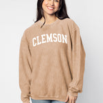 Our best seller! The oversized Clemson Tigers Corded Crew sweatshirt features a super soft, vintage wash corded fabric. Ribbed crew neckline, cuffs, and hemline. Each piece is individually dyed, so please note there may be variation in color piece to piece. Sometimes, there can be a light streak at the shoulder due to the unique dye process, which is common.
