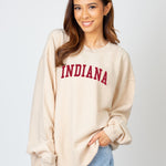 Our best seller! The oversized Indiana Hoosiers Corded Crew sweatshirt features a super soft, vintage wash corded fabric. Ribbed crew neckline, cuffs, and hemline. Each piece is individually dyed, so please note there may be variation in color piece to piece. Sometimes, there can be a light streak at the shoulder due to the unique dye process, which is common.
