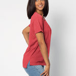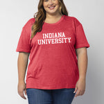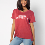 An Indiana Hoosiers staple with just the right amount of detail. This easygoing everyday tee is crafted from a lightweight cotton poly blend with a subtle heathered look and a soft hand feel. Features ribbed scoop neck, short rolled sleeves, and a longer back hem for extra coverage.