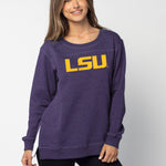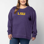 A classic LSU Tigers crew neck fleece in a flattering tunic length that provides perfect coverage. Made for multitasking, the relaxed silhouette looks good in a variety of settings and pairs well with beloved jeans or leggings for extra comfort. Made from a heathered fleece with an extra smooth finish. Features easy-moving side slits finished with white twill tape