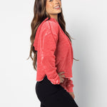 The softest Oklahoma Sooners hoodie you'll own! Roomy and boxy burnout fleece waist-length hoodie. Features a drawstring hood, dropped shoulders, and raw edge hemline. Burnout wash process provides a unique, washed and worn look and a comfortable feel. Pairs perfectly with our burnout joggers for trendy matching set.