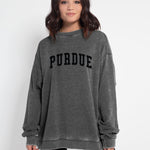 The softest, coziest Purdue Boilermakers fleece you'll ever wear. Buttery soft to the touch and burnout wash treatment for an edgy take on this classic silhouette. Unisex oversized fleece sweatshirt with ribbed neckline, cuffs, hem. Dropped shoulders and relaxed bottom hemline.