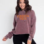 The softest Virginia Tech Hokies hoodie you'll own! Roomy and boxy burnout fleece waist-length hoodie. Features a drawstring hood, dropped shoulders, and raw edge hemline. Burnout wash process provides a unique, washed and worn look and a comfortable feel. Pairs perfectly with our burnout joggers for trendy matching set.
