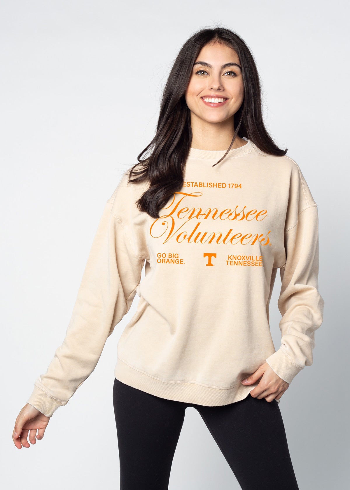 Tennessee Volunteers Orientation Burnout Crew Sweatshirt in Oatmeal