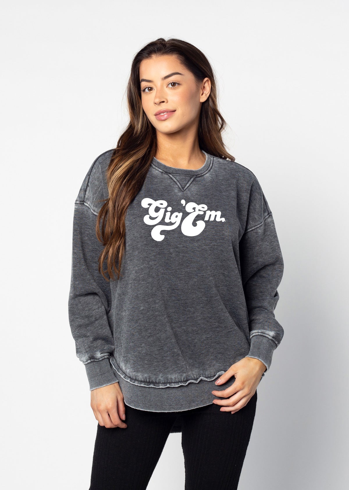 This ultra-soft Texas A&M Aggies crew neck with dropped shoulders and relaxed hi-lo curved bottom hemline features ribbed neckline, cuffs and hem. Our favorite worn look is achieved by the burnout wash process.