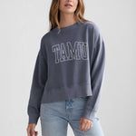 Introducing our Texas A&M Aggies Malibu Crew sweatshirt, crafted from our signature Salt Wash fleece, this pullover is as soft as it gets, offering a luxurious feel against your skin. Designed to elevate your everyday style. Featuring a cropped length and flattering seaming details, along with a classic crew neckline and wide bottom rib band.