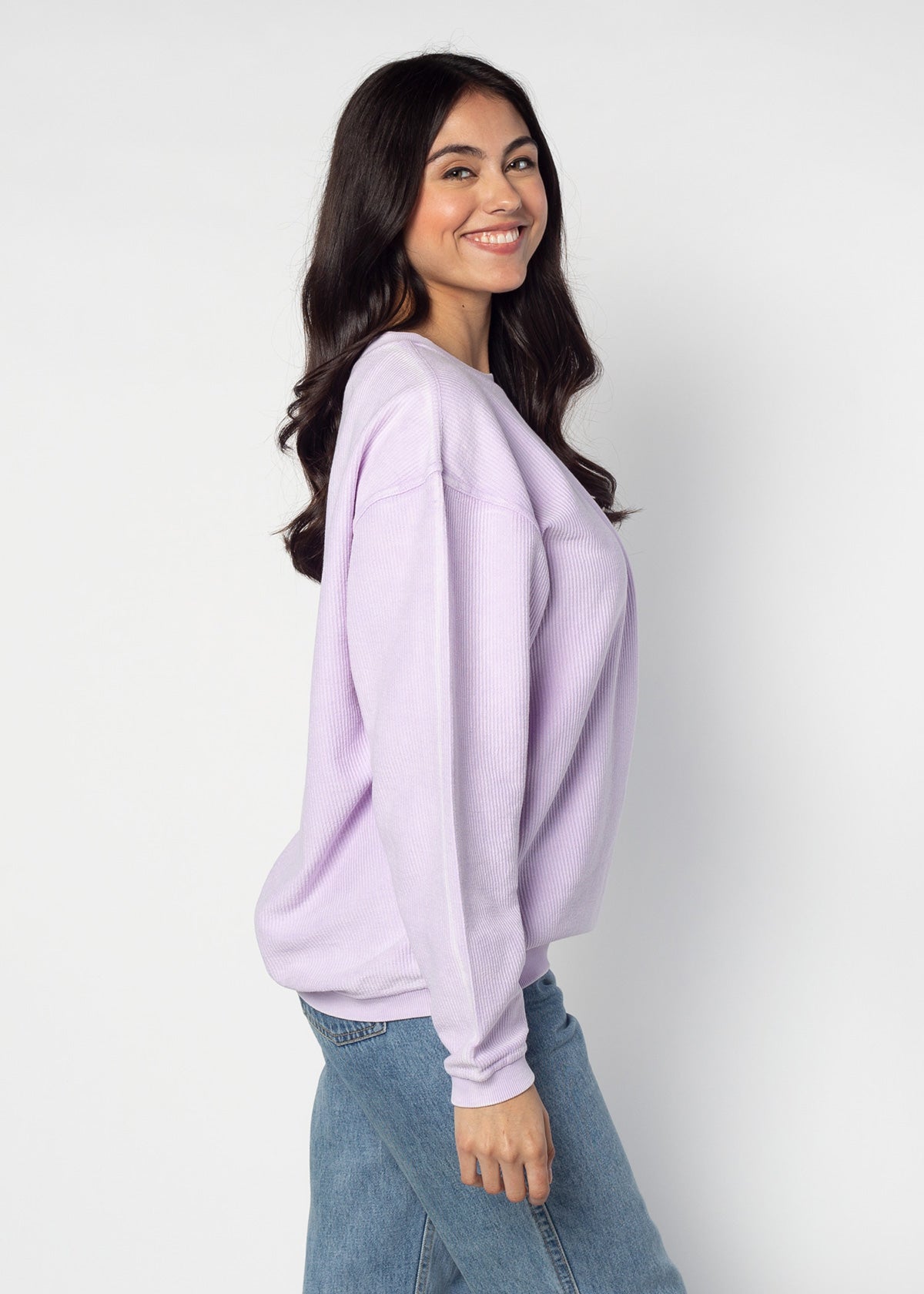 Our best seller! The oversized Clemson Tigers Corded Crew sweatshirt features a super soft, vintage wash corded fabric. Ribbed crew neckline, cuffs, and hemline. Each piece is individually dyed, so please note there may be variation in color piece to piece. Sometimes, there can be a light streak at the shoulder due to the unique dye process, which is common.