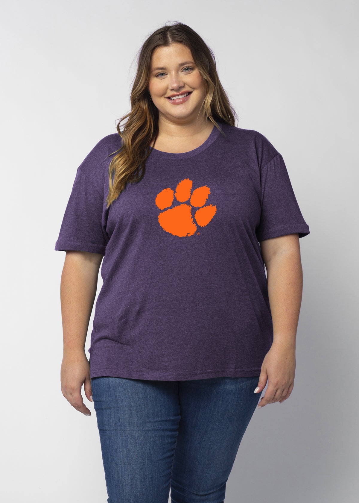 A Clemson Tigers staple with just the right amount of detail. This easygoing everyday tee is crafted from a lightweight cotton poly blend with a subtle heathered look and a soft hand feel. Features ribbed scoop neck, short rolled sleeves, and a longer back hem for extra coverage.