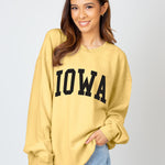 Our best seller! The oversized Iowa Hawkeyes Corded Crew sweatshirt features a super soft, vintage wash corded fabric. Ribbed crew neckline, cuffs, and hemline. Each piece is individually dyed, so please note there may be variation in color piece to piece. Sometimes, there can be a light streak at the shoulder due to the unique dye process, which is common.