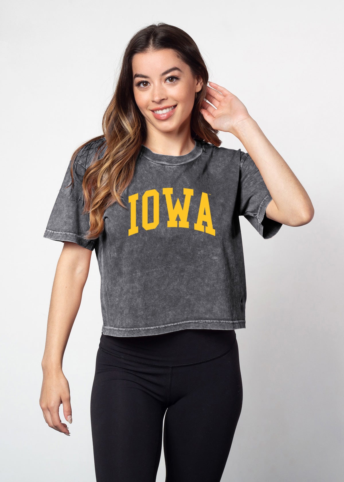 Your new go-to Iowa Hawkeyes waist-length tee in a relaxed, boxy silhouette. The vintage inspired mineral wash adds another excuse to get this tee asap.