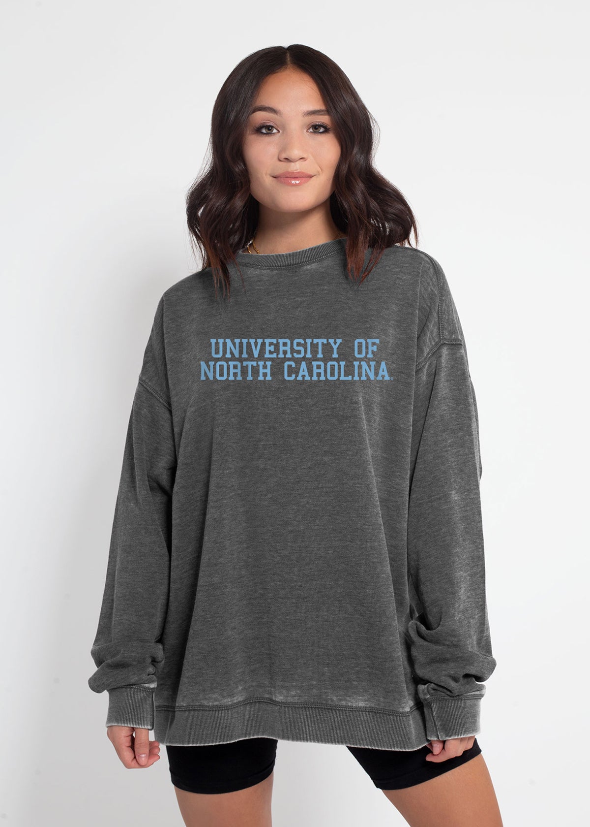 The softest, coziest North Carolina Tar Heels fleece you'll ever wear. Buttery soft to the touch and burnout wash treatment for an edgy take on this classic silhouette. Unisex oversized fleece sweatshirt with ribbed neckline, cuffs, hem. Dropped shoulders and relaxed bottom hemline.
