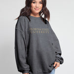 Our best seller! The oversized Florida State Seminoles Corded Crew sweatshirt features a super soft, vintage wash corded fabric. Ribbed crew neckline, cuffs, and hemline. Each piece is individually dyed, so please note there may be variation in color piece to piece. Sometimes, there can be a light streak at the shoulder due to the unique dye process, which is common.