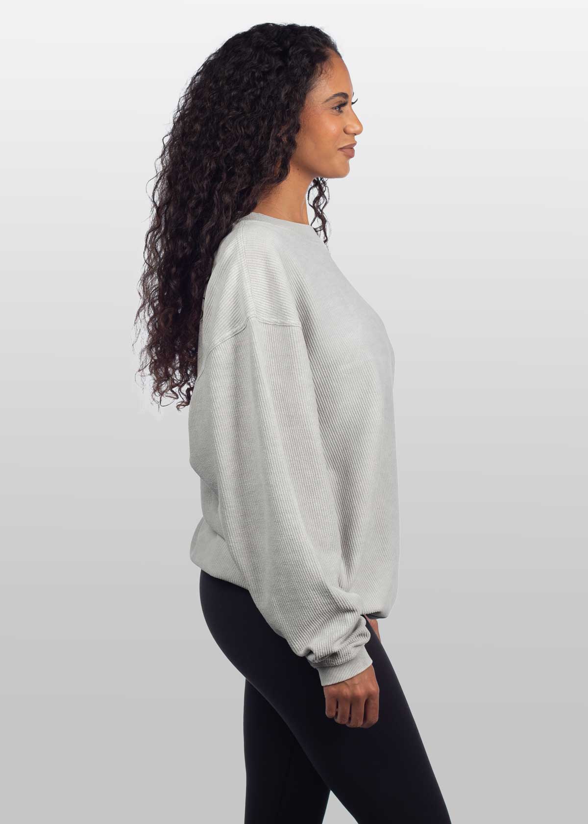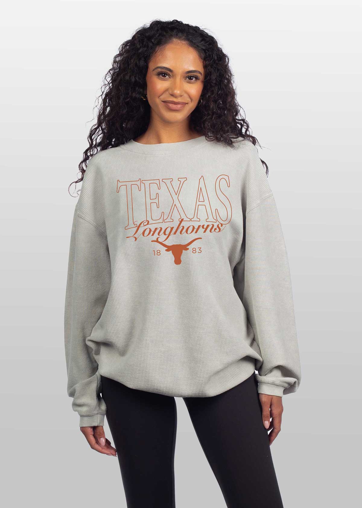 Our best seller! Officially licensed Texas Longhorns oversized sweatshirt made with super soft, vintage-washed corded fabric. Features a ribbed crew neckline, cuffs, and hemline. Each piece is individually dyed, so please note there may be variation in color piece to piece. Sometimes, there can be a light streak at the shoulder due to the unique dye process, which is common.