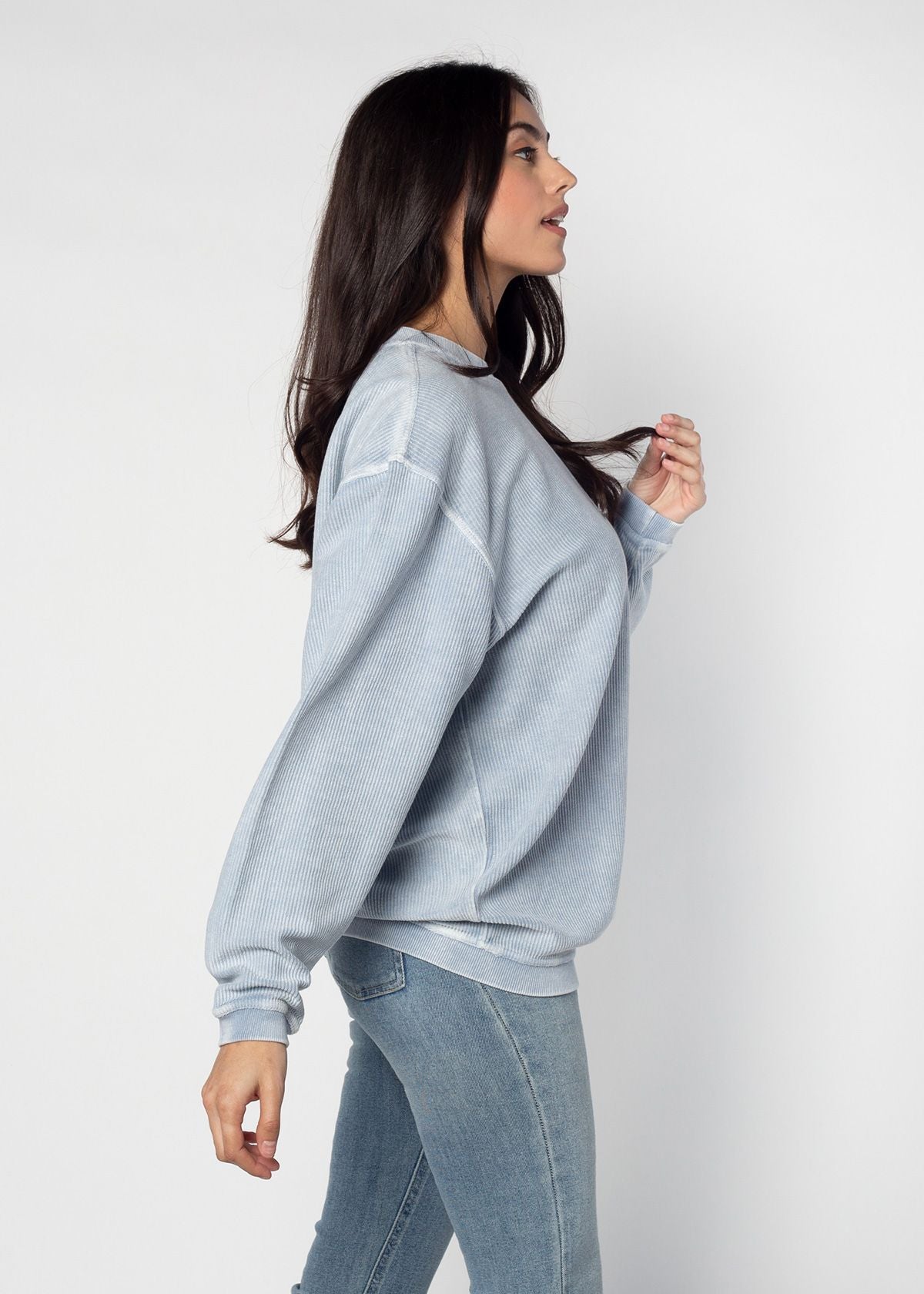Our best seller! Oversized sweatshirt with a super soft, vintage wash corded fabric. Features a ribbed crew neckline, cuffs, and hemline.
