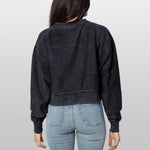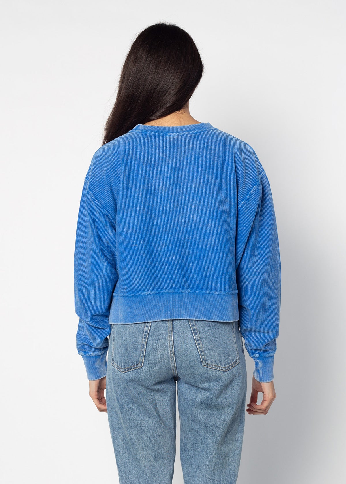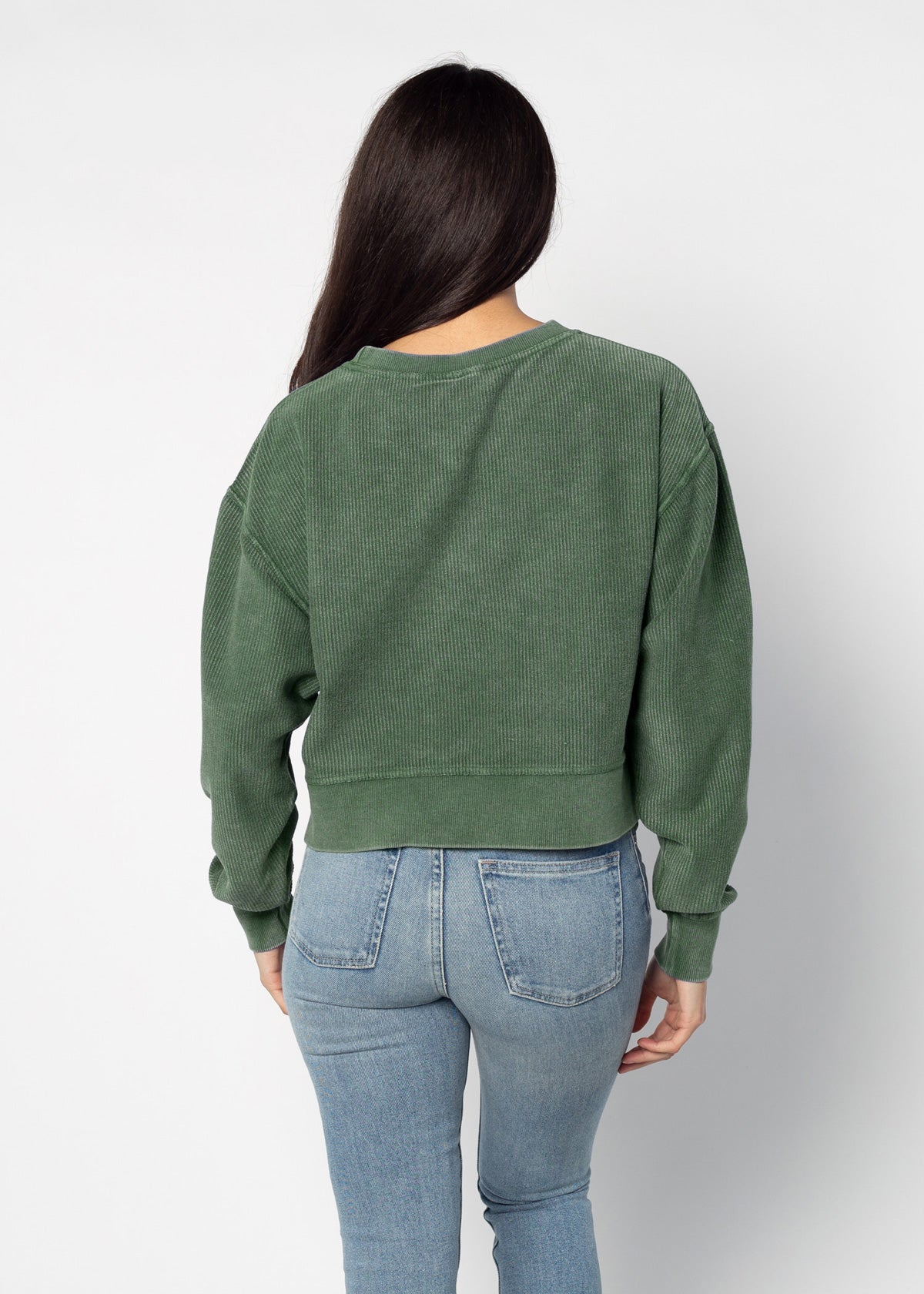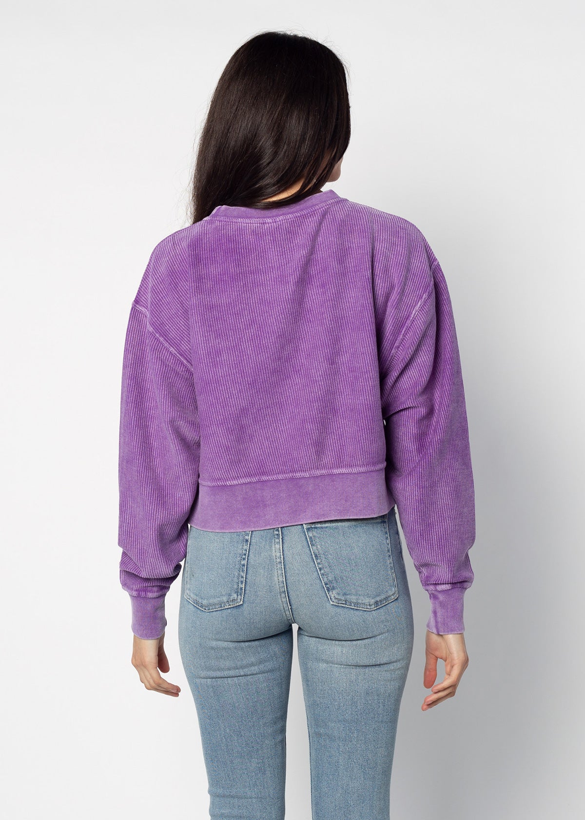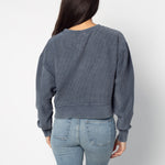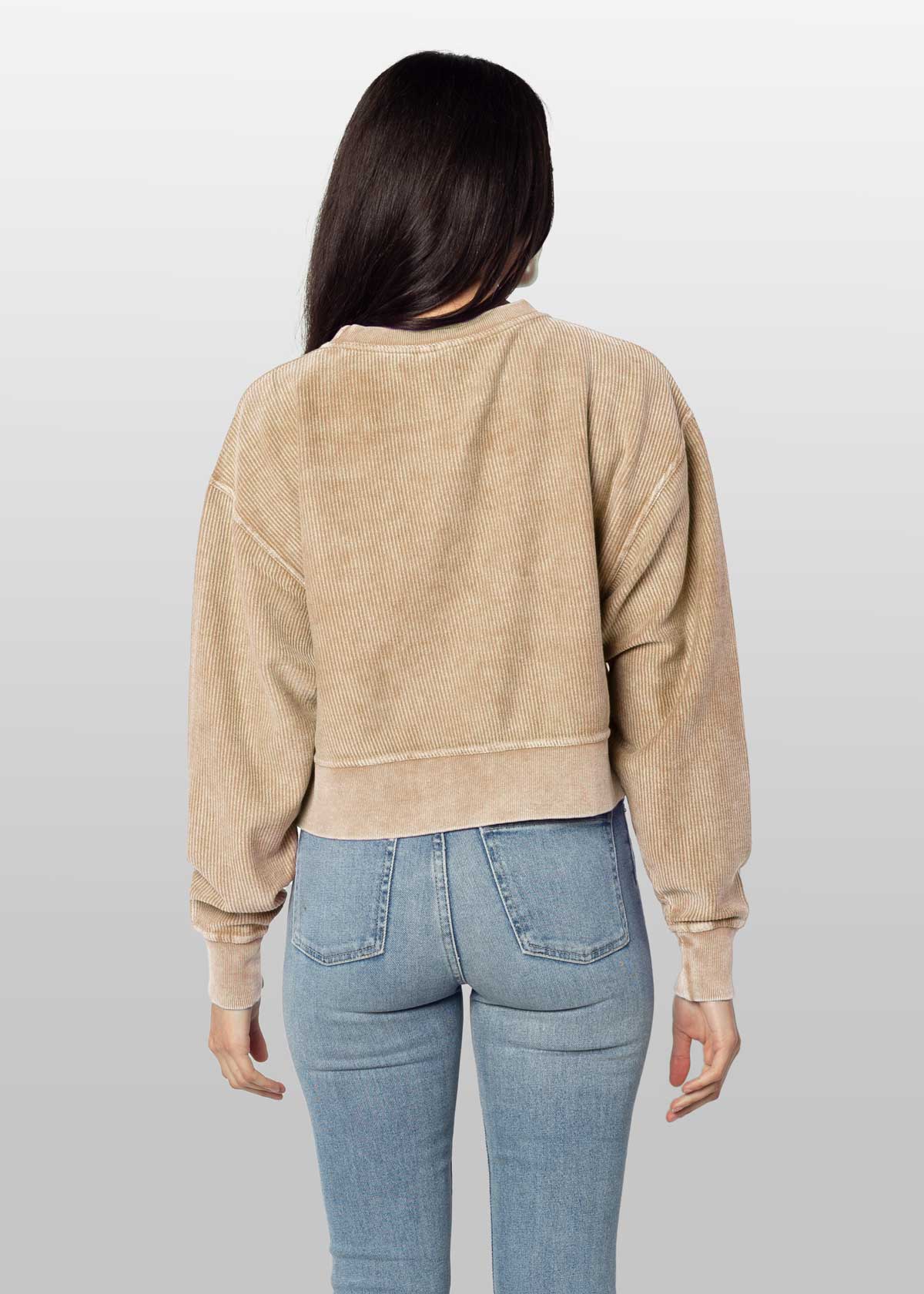 An update to our best seller! Oversized sweatshirt with a super soft vintage wash corded fabric. Waist-length, feminine silhouette features a ribbed neckline, cuff and hemline.