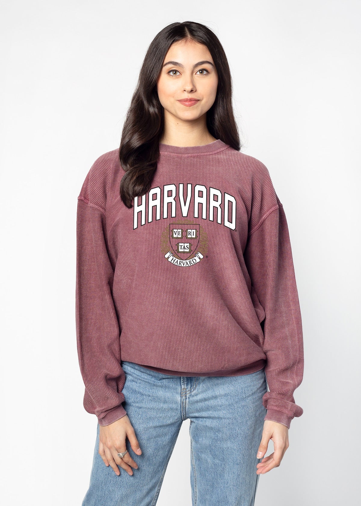 Our best seller! The oversized Harvard Corded Crew sweatshirt features a super soft, vintage wash corded fabric. Ribbed crew neckline, cuffs, and hemline. Each piece is individually dyed, so please note there may be variation in color piece to piece. Sometimes, there can be a light streak at the shoulder due to the unique dye process, which is common.