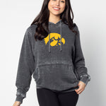 Unisex Iowa Hawkeyes fleece hoodie with kangaroo front pocket. Ribbed cuffs and hem. Dropped shoulders and relaxed bottom hemline. Burnout wash process provides a unique, washed and worn look and a comfortable feel.